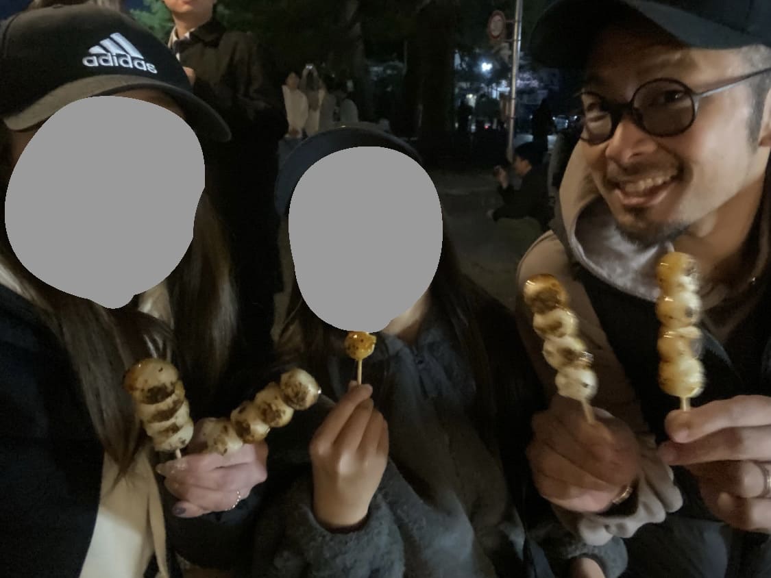 近くで売られているみたらし団子も、私たち家族にとっては花見の定番です。