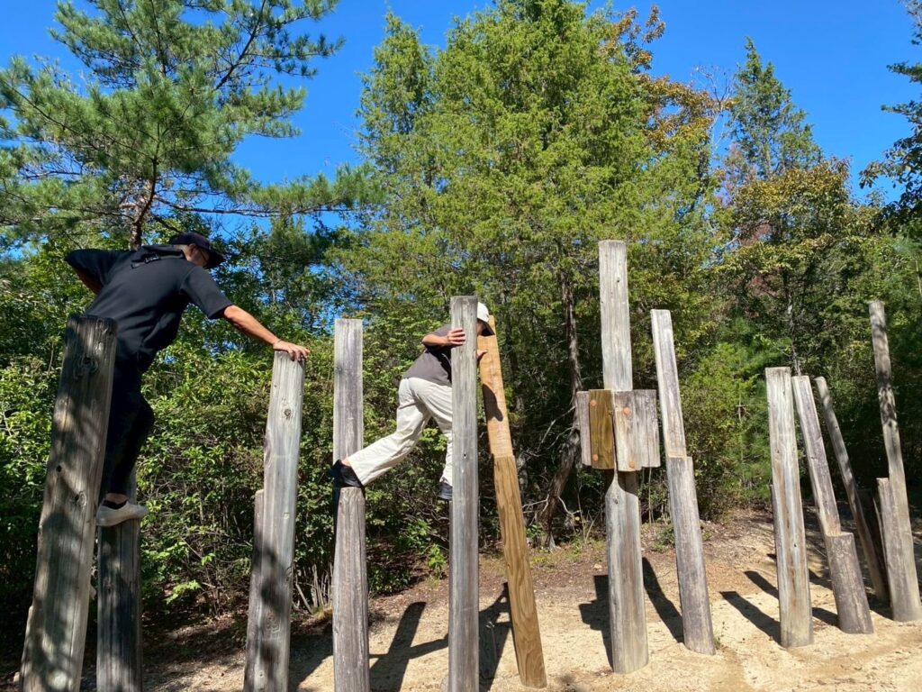 自然の中での本格アスレチックは思いっきり身体を動かせて、家族みんな大満足でした。
