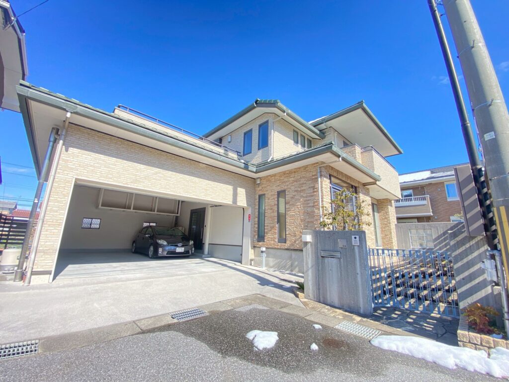 インナーガレージ付・延床約79坪のゆとりある邸宅。土地約87坪の広々敷地に、高級感ある外観と外構。収納充実・家事室やフリースペース付で暮らしやすさ◎。築23年とは思えない美邸です!