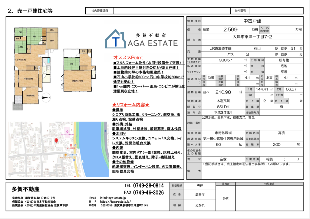 大津市平津1丁目の中古戸建が、売主様のご意向によりフルリフォーム物件へ変更となりました。
